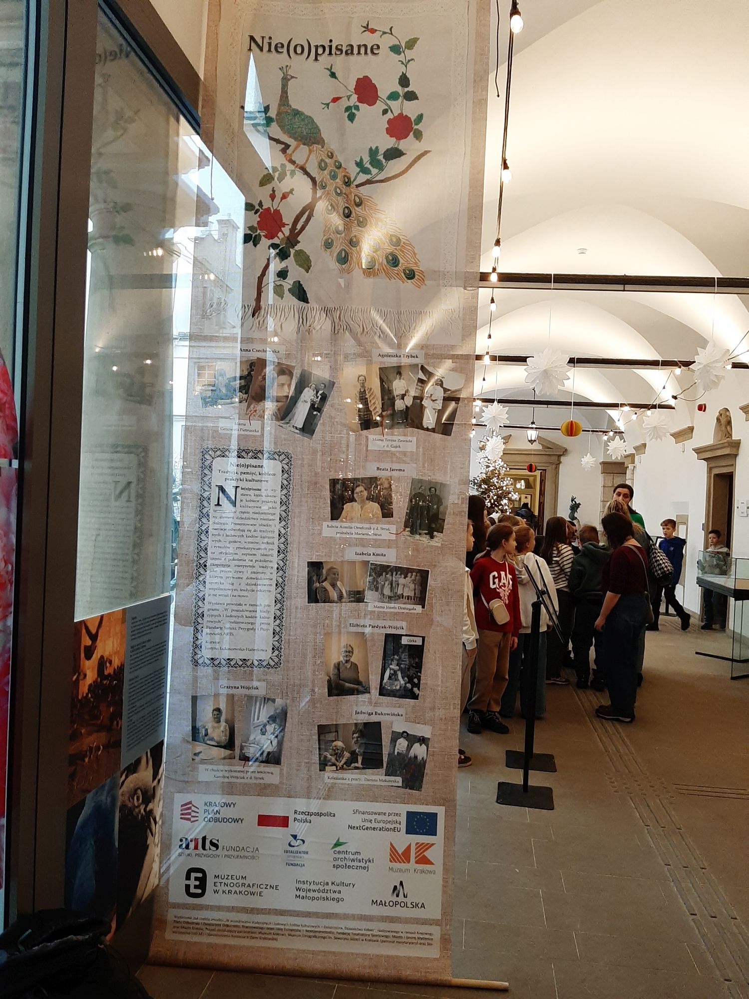 „Nie(o)pisane…” jest podsumowaniem projektu „W poszukiwaniu tradycyjnych i ludowych kodów kulturowych – Żeńszczyzna – Dziedzictwo Kobiet”, realizowanego przez Fundację Sztuki, Przygody i Przyjemności ARTS. To projekt, który wydobywa i upowszechnia kobiece historie wpisane w lokalne praktyki twórcze oraz codzienność Krakowa i okolicznych miejscowości — pokazując kobiety jako depozytariuszki i współtwórczynie dziedzictwa (materialnego i niematerialnego).)
